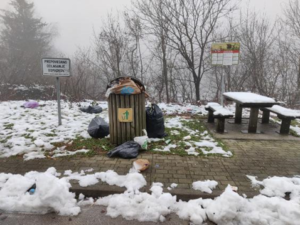 Kljub opozorilnim tablam in kljub opozorilom pristojnega ministrstva o prepovedi odlaganja odpadkov – hrane, zaradi širjenja prašičje kuge, posameznikov to ne odvrne od nezakonitega ravnanja. Na lokaciji je vidno, da so divje živali vreče raztrgale in vsebino raznesle po celotnem počivališču ob regionalni cesti.