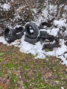 Odvržene gume v naravno okolje, taki prizori so v zimskem času in spomladanskem času (termini menjave pnevmatik) zelo pogost pojav. Občane pozivamo, da poskrbijo za izrabljene pnevmatike iz svojega vozila in jih oddajo v za to določene zbirne centre.